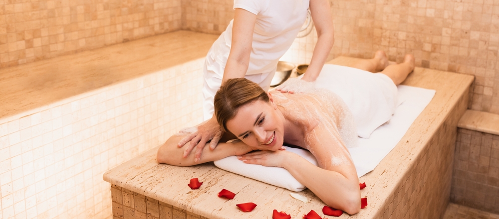 Your journey begins in a warm steam chamber that opens up your pores, followed by a gentle exfoliation with black soap and natural scrub. The session ends with a soothing body mask and aromatic oil massage, leaving your skin soft, radiant, and completely renewed.